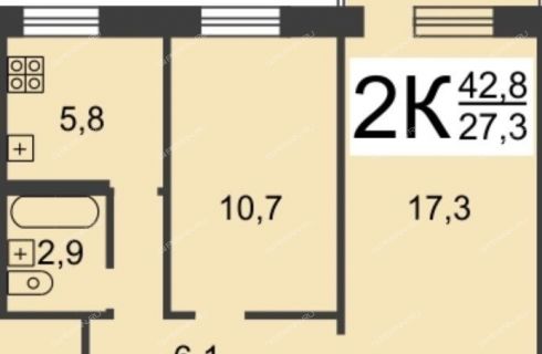 Общая площадь квартиры - 42,8 кв.м.