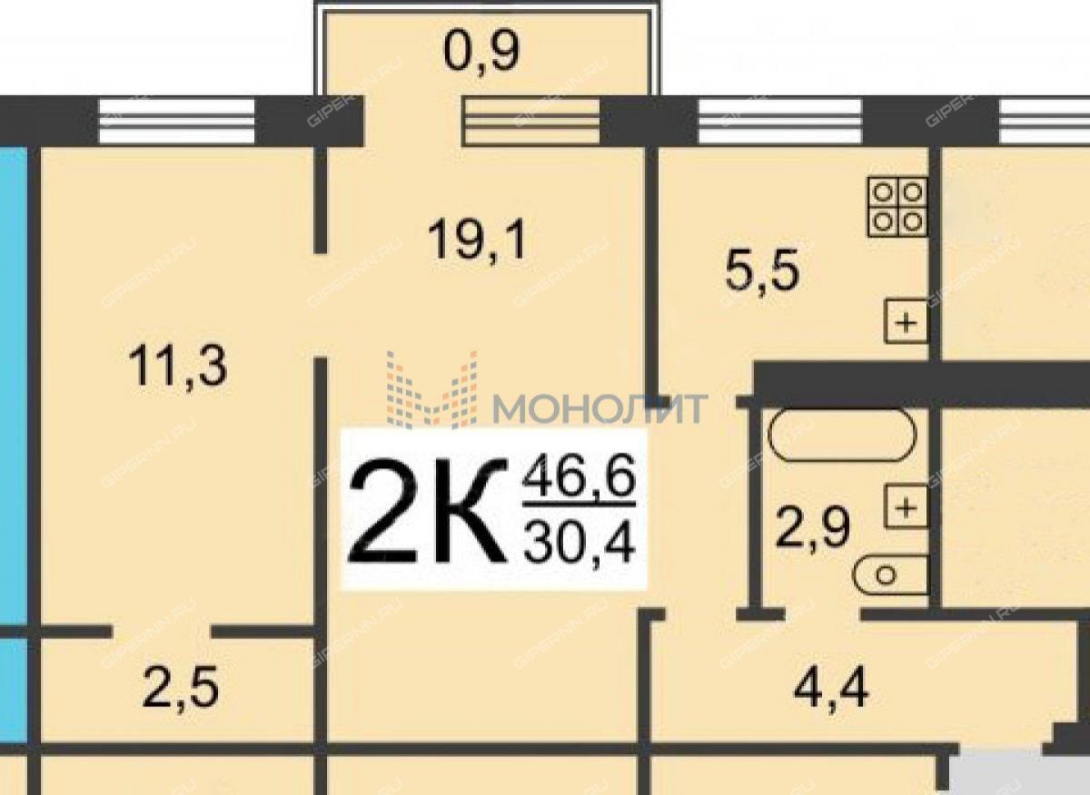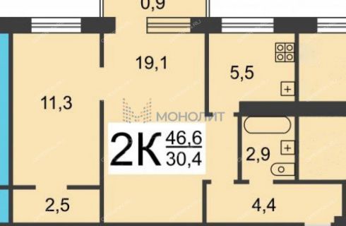 Площадь | 46,6 / 30,4 / 5,5 |