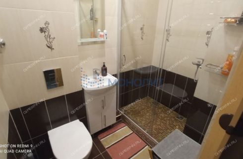 С/узел совмещен в современном кафеле, душевая кабинка, гигиенический душ, инсталляция.