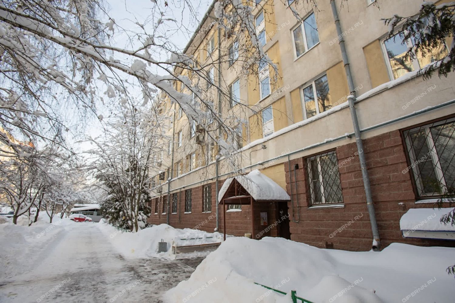 Дом расположен на второй линии от проезжей части — тихо и спокойно, при этом в пешей доступности: