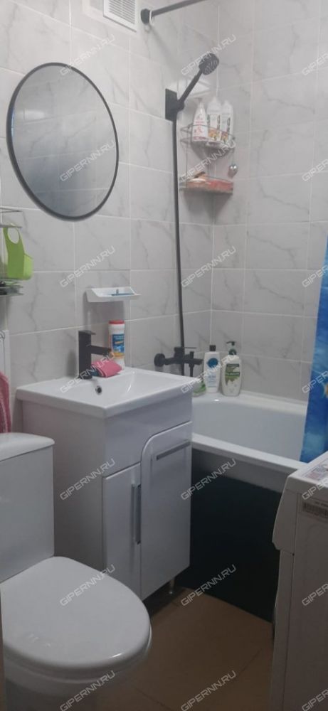 В комнатах и на кухне новый матовый натяжной потолок, на полу приятный текстурный ламинат "бук", в прихожей и в ванной напольная плитка. Сантехника: ванна + смеситель, сан. узел, раковина + смеситель, тумба под раковину, круглое оригинальное зеркало, шкафчик подвесной над полотенцесушителем практически новые. Полотенцесушитель не заменялся.