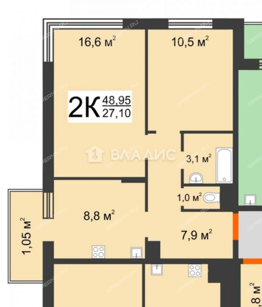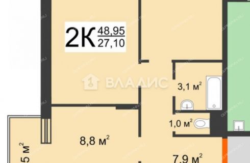 | Площадь | 48,9 / 27,1 / 8,8 |