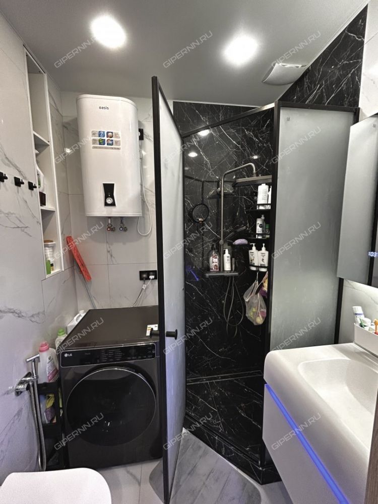 Санузел: Современный дизайн с душевой кабиной и теплыми полами для максимального комфорта. Накопительный бойлер.