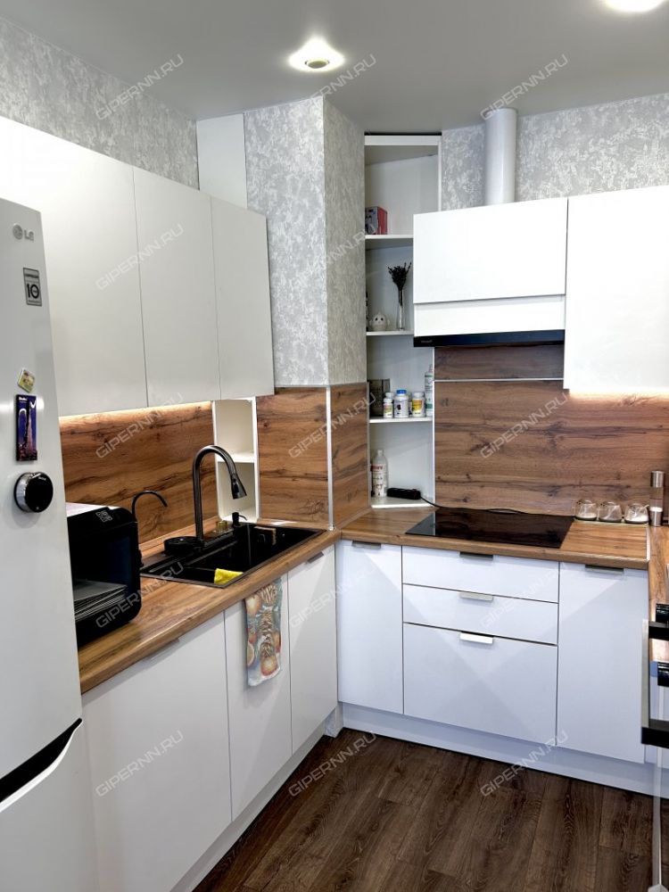 Функциональная кухня-гостиная: Просторная зона с нишей под современный кухонный гарнитур, обустроенный техникой, которая входит в стоимость . Установлена многоступенчатая система очистки воды. Теплые полы в зоне кухни.