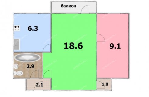 | Площадь | 40 / 27,7 / 6,3 |
