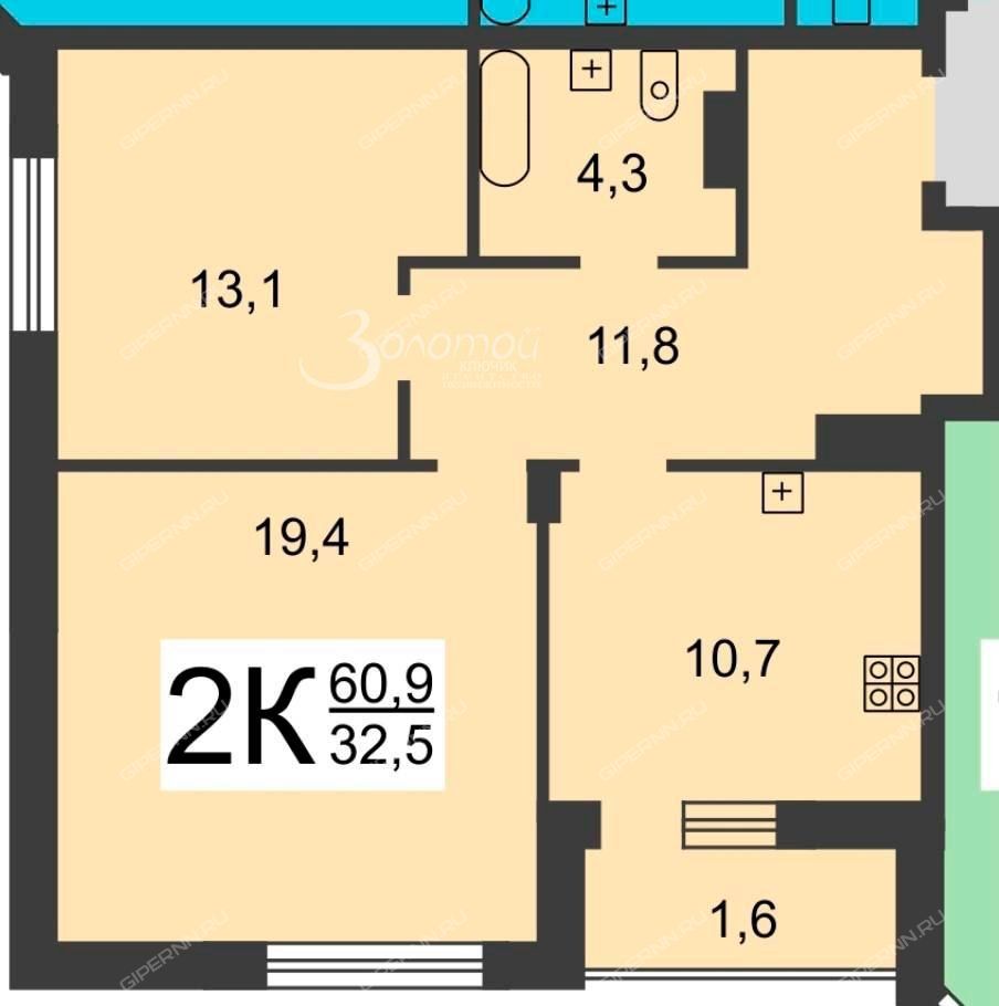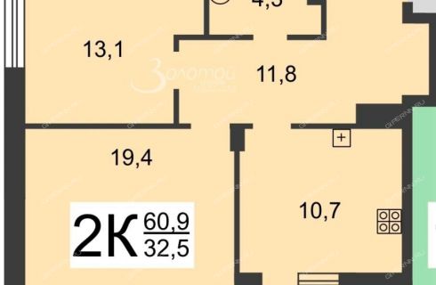 две изолированные комнаты (19,4+13,1)