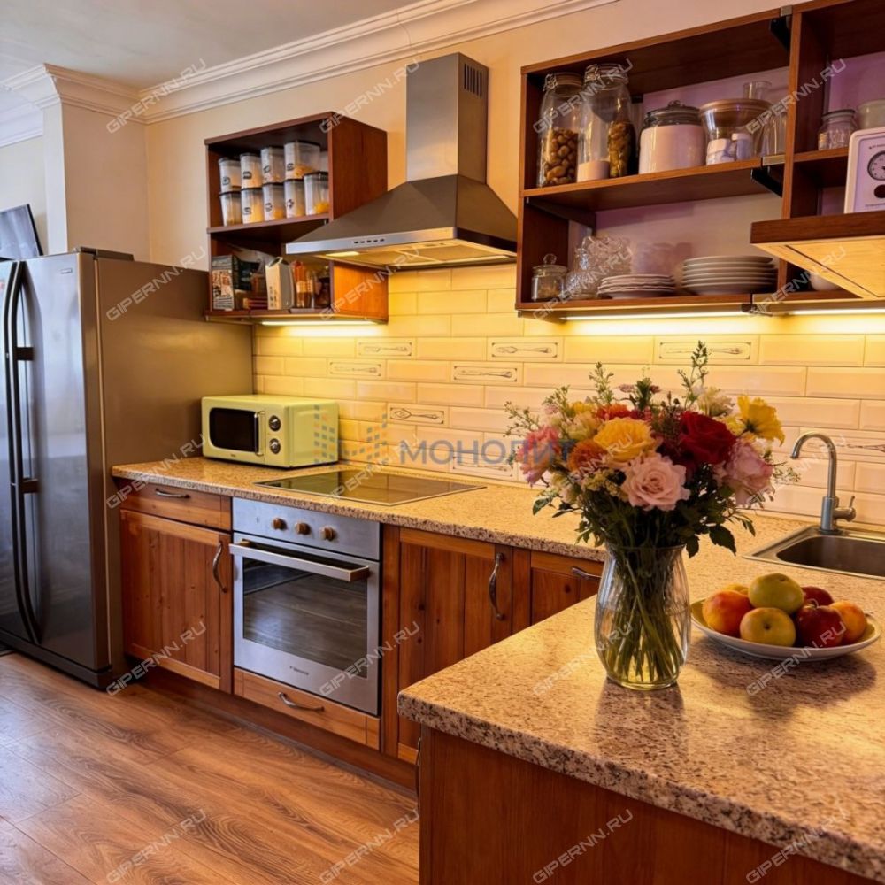 Эта квартира прекрасно подойдет для семей с детьми, так как в непосредственной близости находятся средняя общеобразовательная школа, детские сады №5 и №33, городская поликлиника №7 Нижегородского района, Нижегородская областная клиническая больница им. Н.А. Семашко, детская городская поликлиника №22 Нижегородского района. Также рядом есть высота, веревочный парк и торгово-развлекательный центр для вашего удобства.