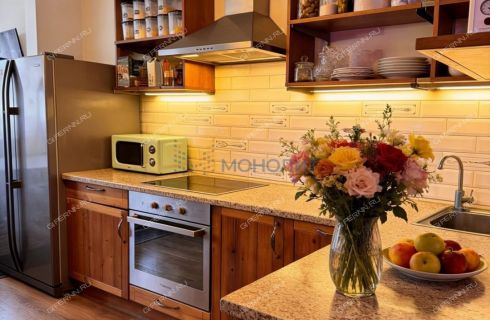На кухне теплый пол. Окна выходят на обе стороны. Дом полностью на электричестве. ( Тариф занижен). Платежи в месяц примерно 7000 рублей. В ванной новая сантехника. Этаж первый, но высокий. Внизу находится офис ТСН. Остается вся встраиваемая техника, мебель, холодильник.
