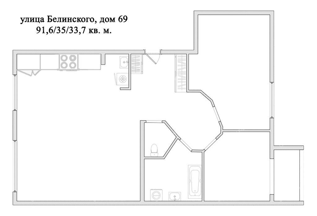 | Площадь | 91,6 / 34 / 35 |