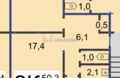 | Площадь | 50 / 34,8 / 6 |