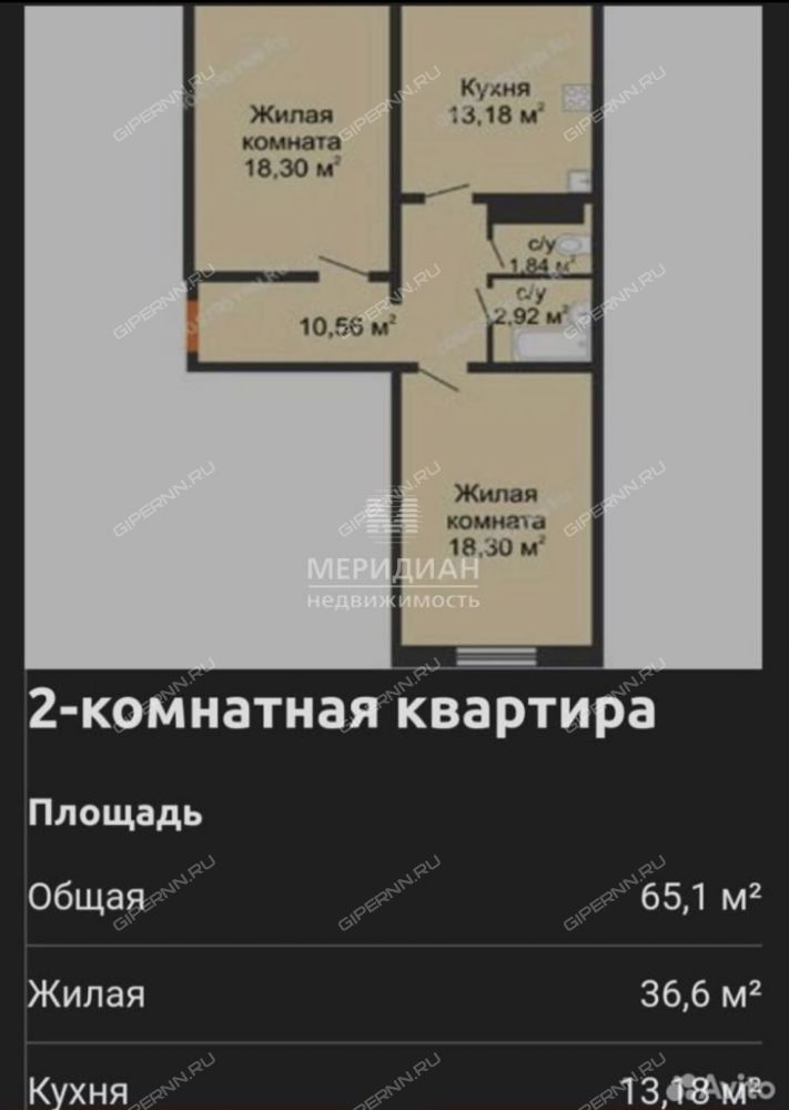 Общая площадь 65 кв.м. Просторные изолированные комнаты по 18,3 кв.м., окна выходят на разные стороны дома.