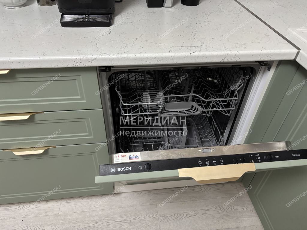Новым собственникам остаются два встроенных шкафа Стэнли в прихожей и кухонный гарнитур со встроенной техникой.