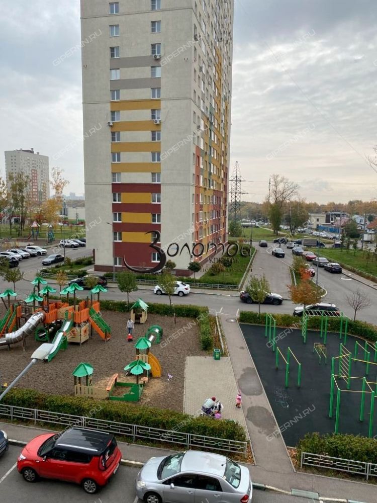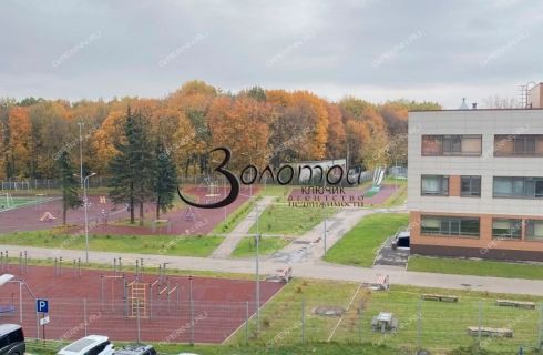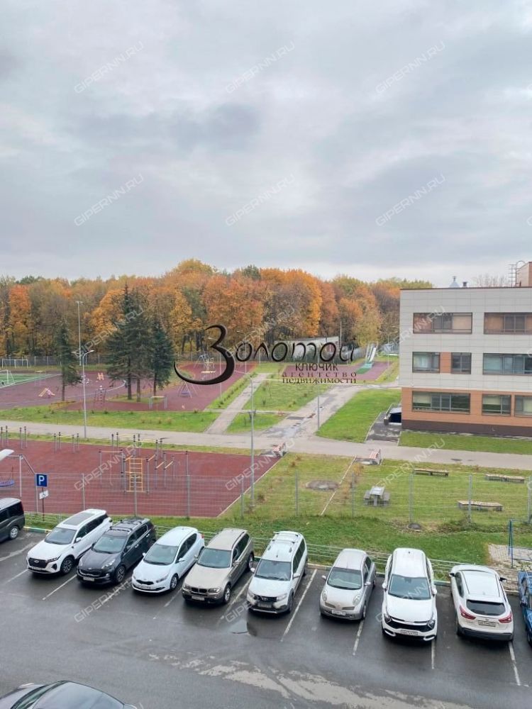 Вид из окон на новую школу, детскую и спортивную площадку.