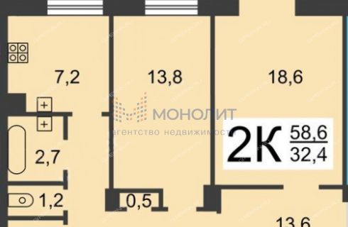 | Площадь | 58,6 / 32,4 / 7,2 |