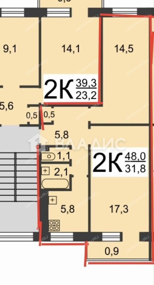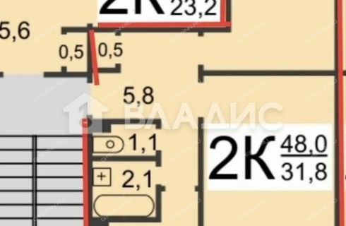 | Площадь | 48 / 31,8 / 5,8 |