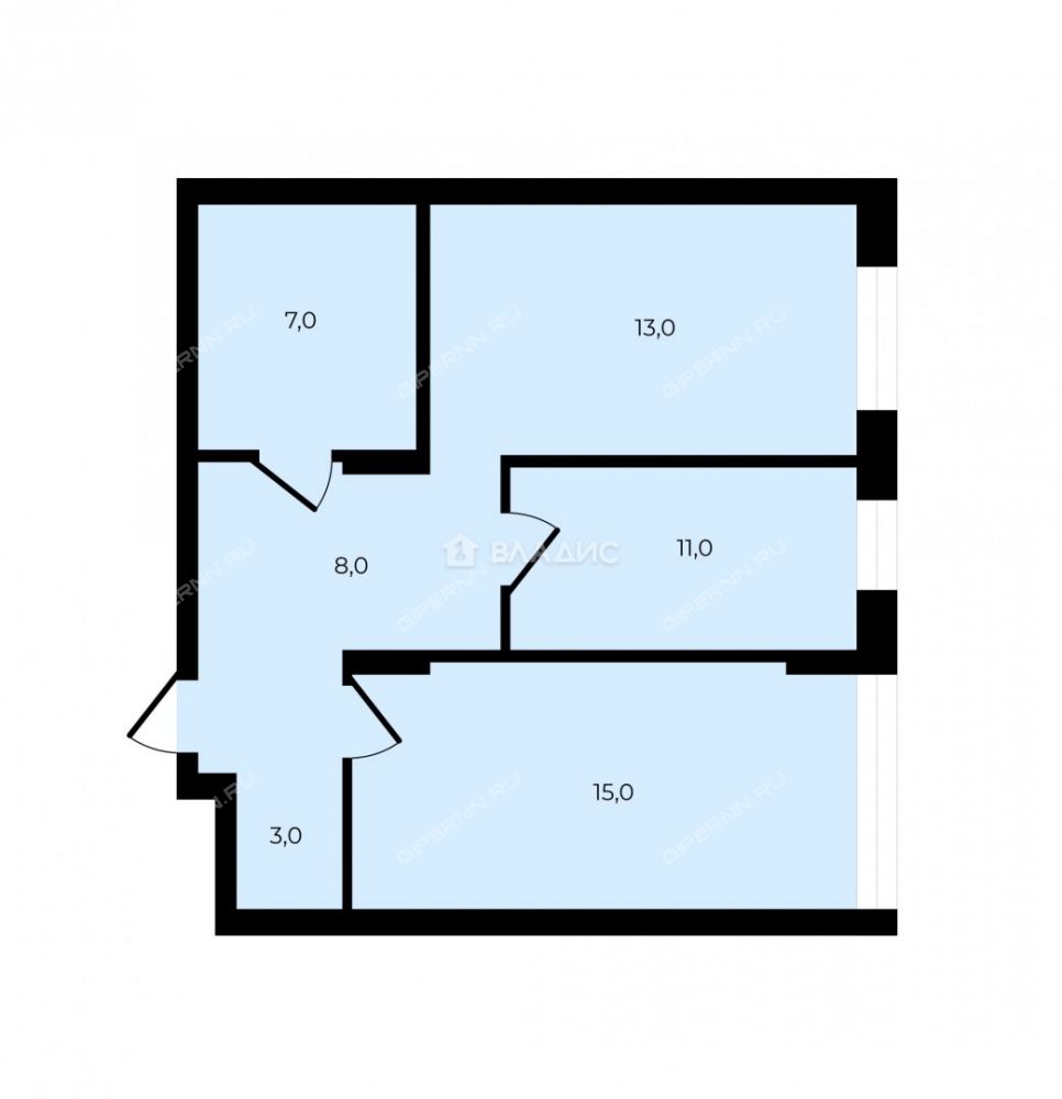 | Площадь | 56,7 / 26 / 13 |