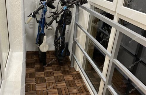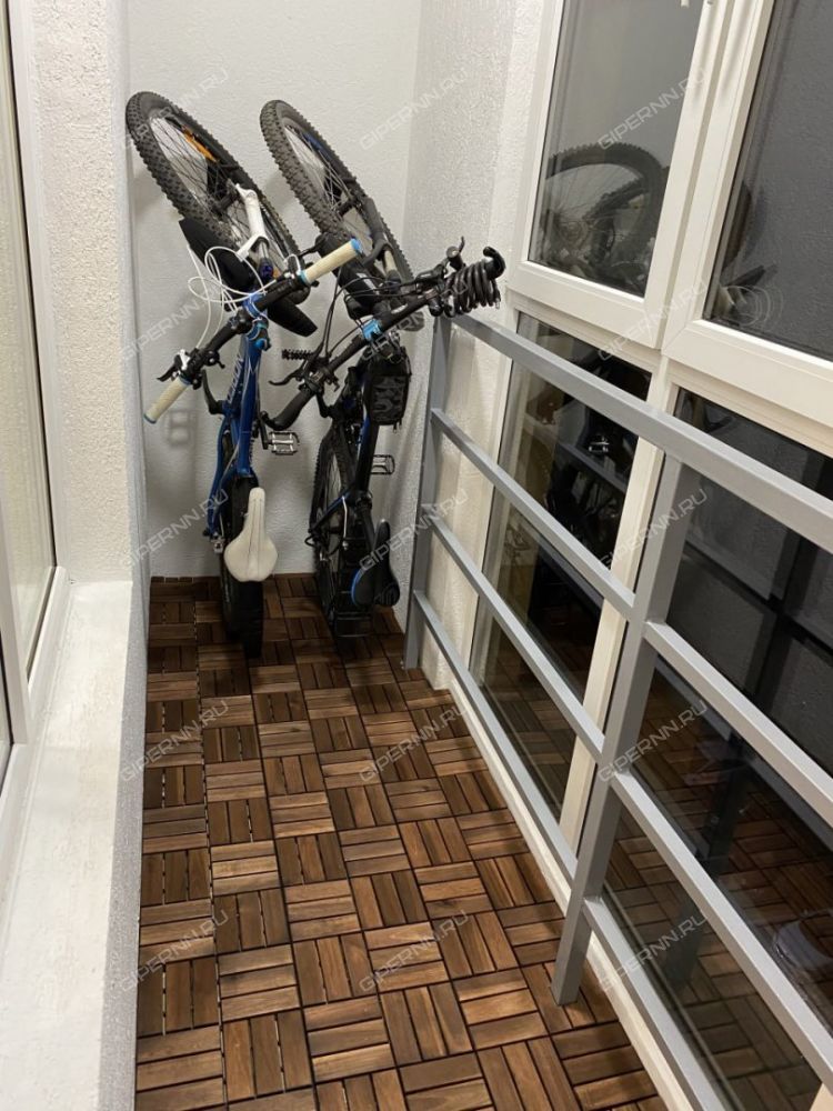 - лоджию перекрасили в белый, провели свет и постелили пол-паркет, а также повесили крючки для 2х велосипедов