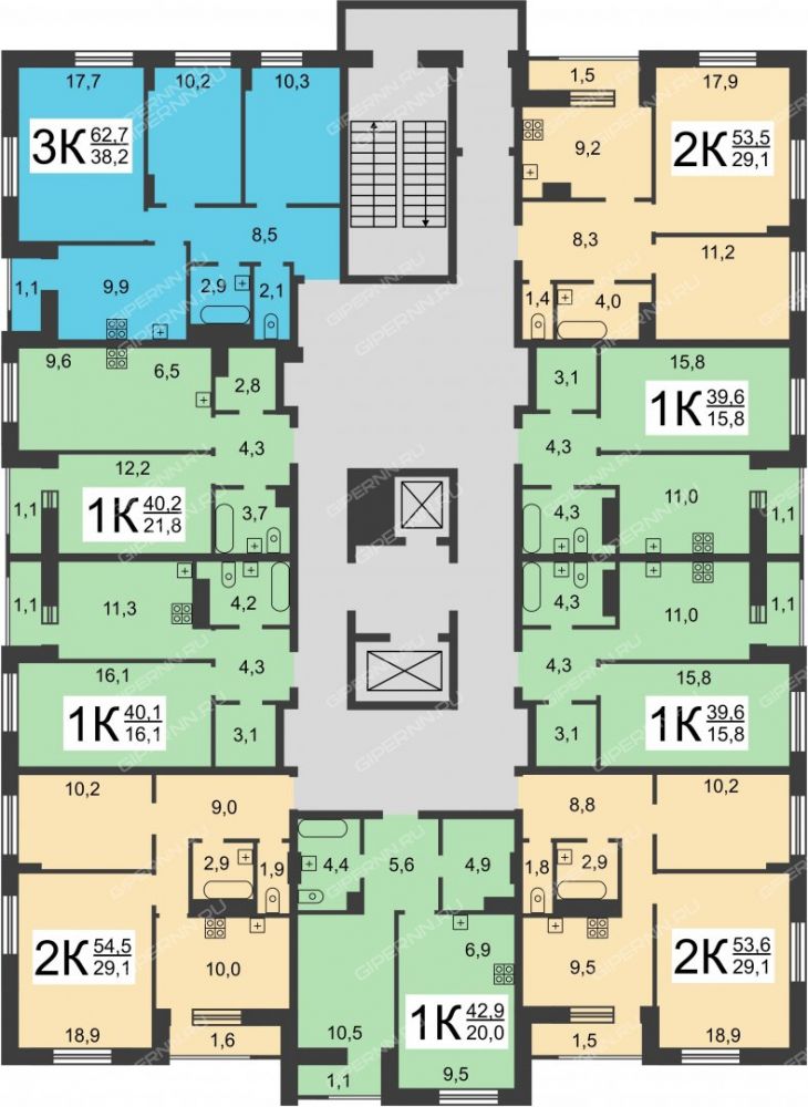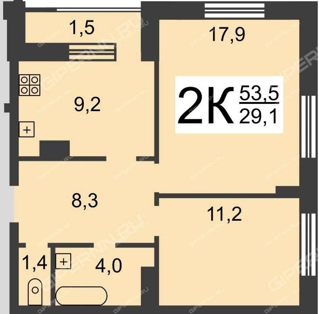 Площадь | 51,5 / 28,6 / 9,2 |