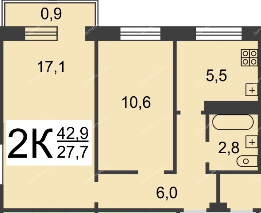жилая площадь 27,7 м