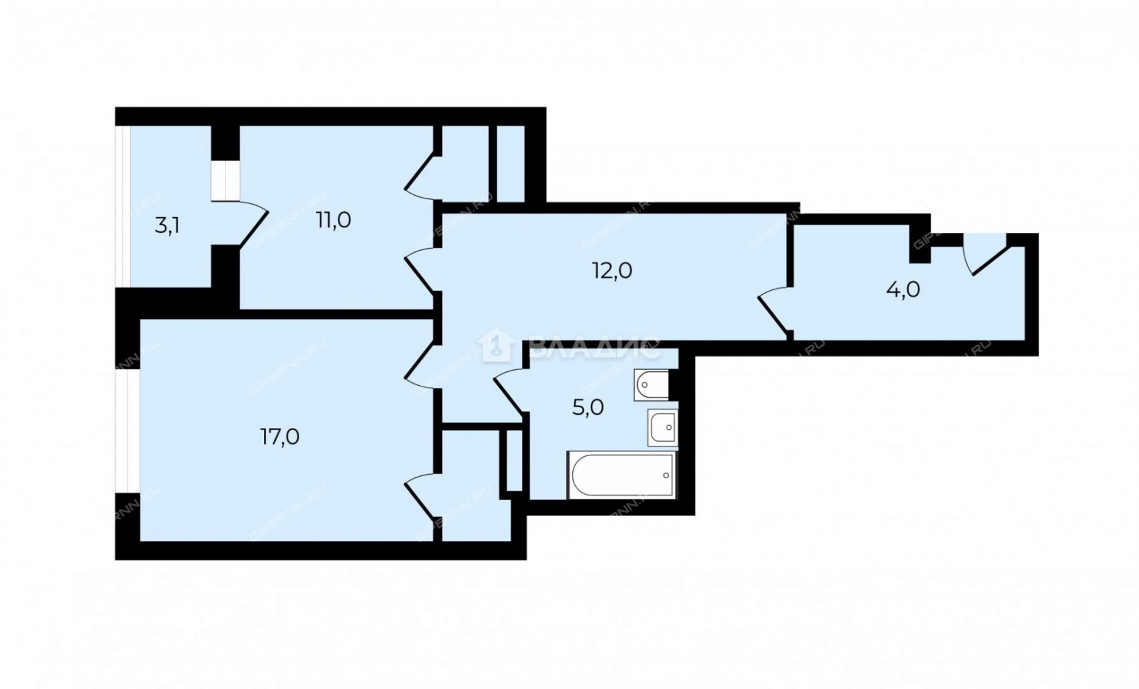 | Высота потолков | 2,7 м (средняя) |