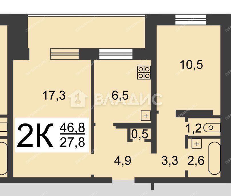 | Площадь | 46,8 / 27,8 / 6,5 |