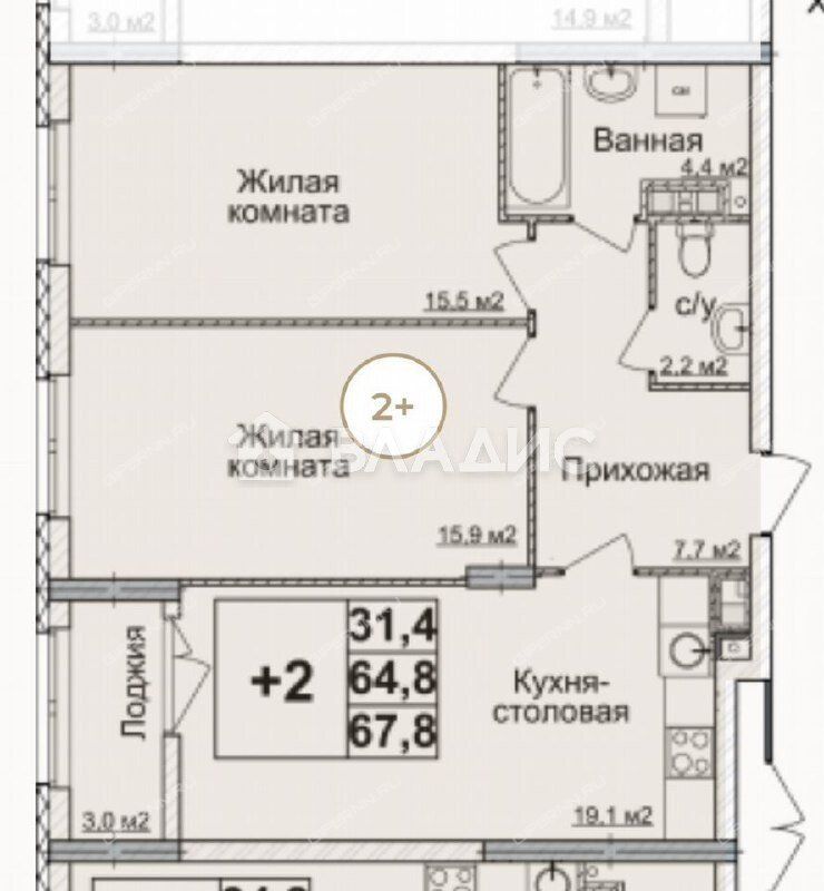 | Площадь | 67,8 / 31,4 / 19,1 |