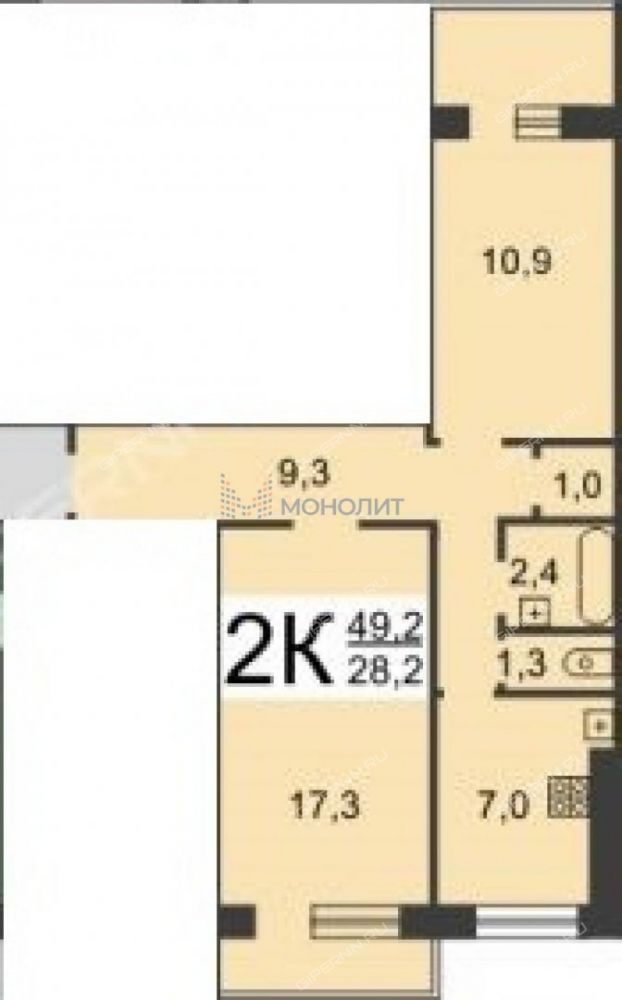 | Площадь | 49,3 / 28,2 / 7 |