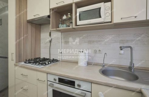 Новым владельцам квартиры остаётся кухонный гарнитур с газовой поверхностью и электрическим духовым шкафом, вытяжкой, фильтром для очистки воды.