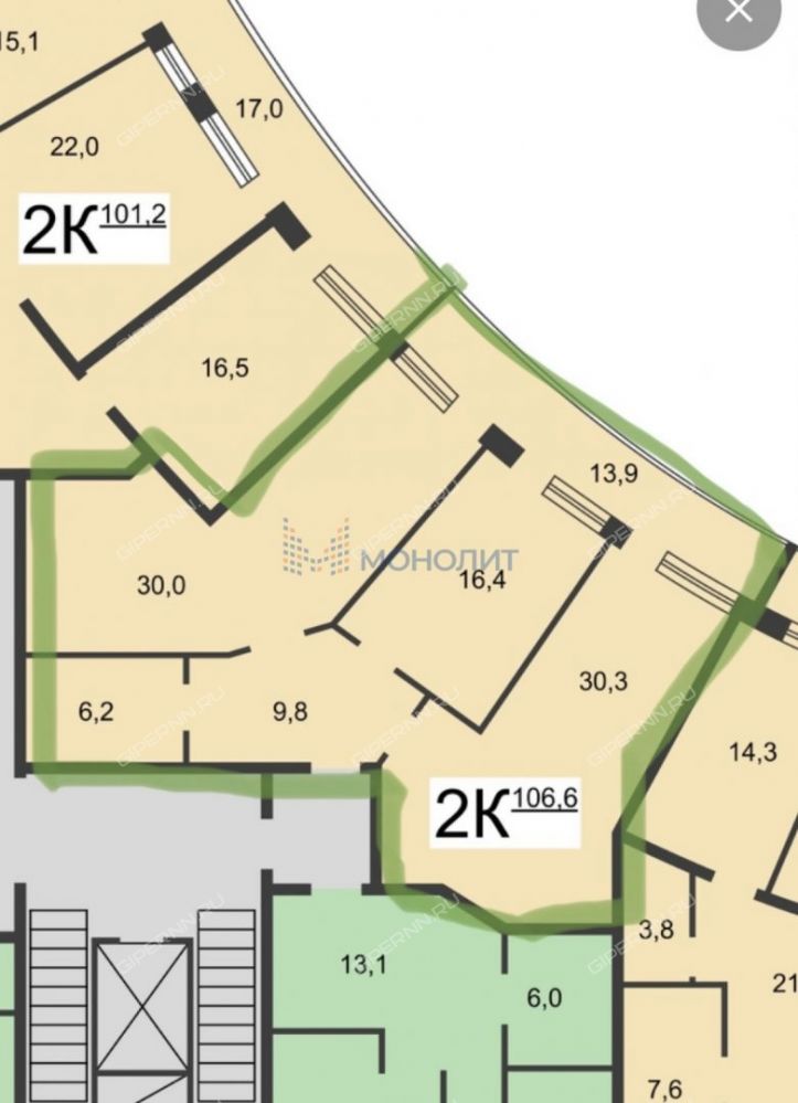 | Площадь | 106,6 / 31,5 / 30 |