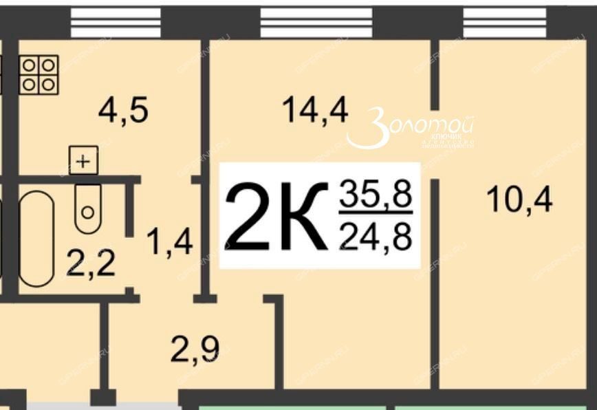 Общая площадь - 35,8 кв.м.