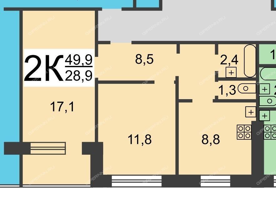 | Площадь | 49,9 / 28,9 / 8,8 |
