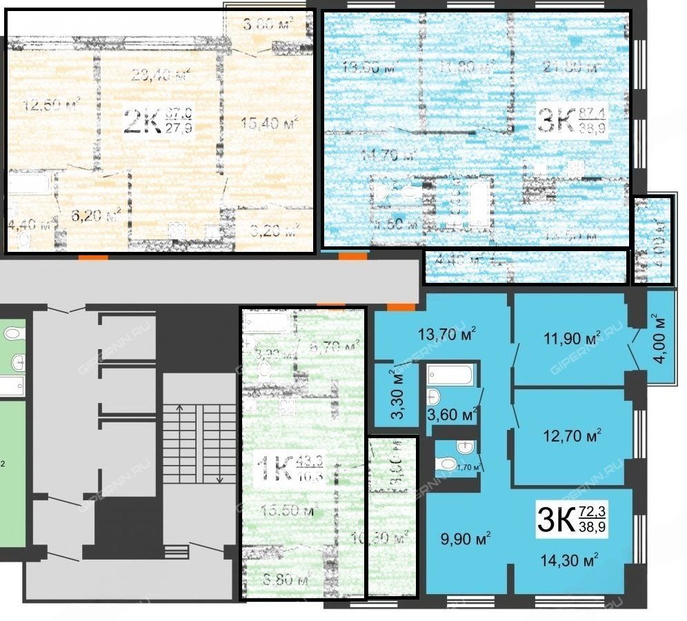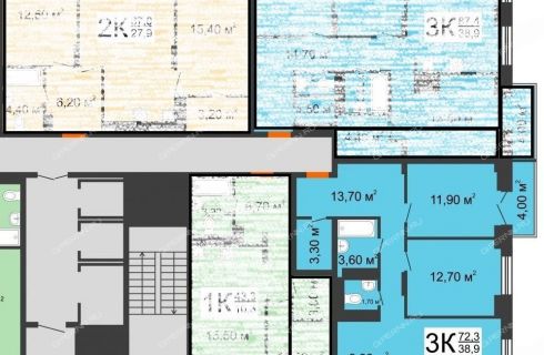 Площадь | 72,3 / 38,9 / 9,9 |