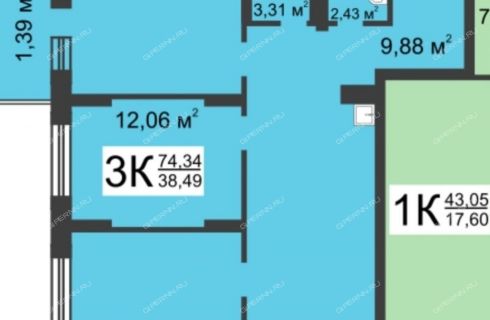 - Комната: 12.1 кв.м.