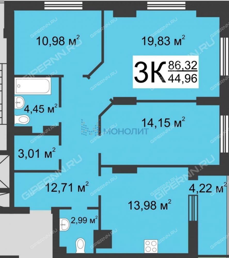| Комнат | 3 комнаты |