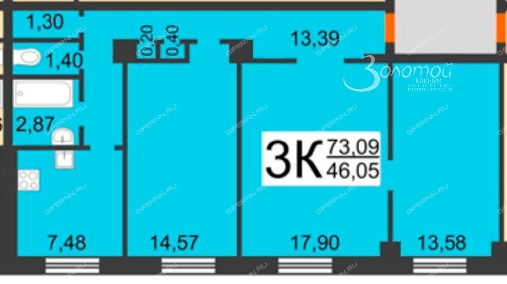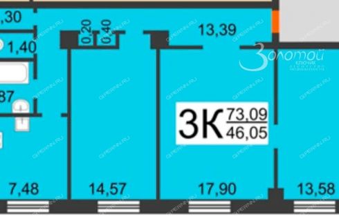Планировка: изолированные комнаты (17,90 м + 14,57 м + 13,58 м)