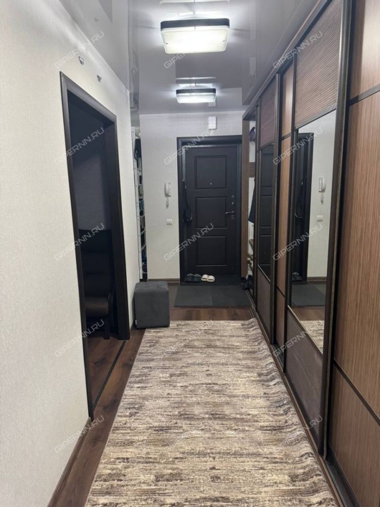 В прихожей во всю длину очень большой и вместительный шкаф-купе сделанный под заказ, вмещает очень много чего