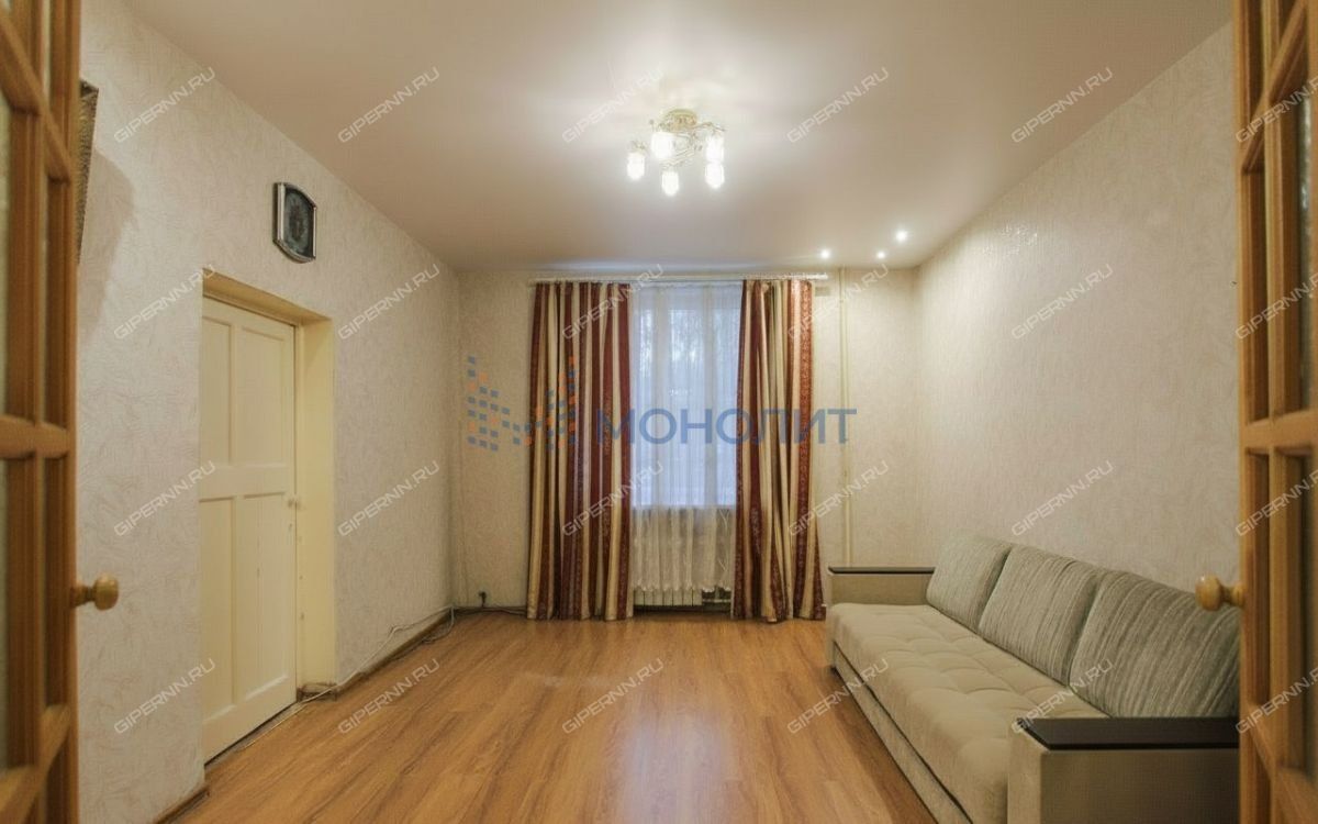 Продается 3-к квартира в сталинке (кирпичная с железобетонными перекрытиями и потолками высотой 3 метра, 1955г.п.), площадью 73.8м² на 2 этаже 5-ти этажного дома в Приокском р-не по адресу пр-т Гагарина, 110. Рядом находятся улицы Терешковой, Бонч-Бруевича, Сурикова, Крылова, Арсеньева и Вологдина.