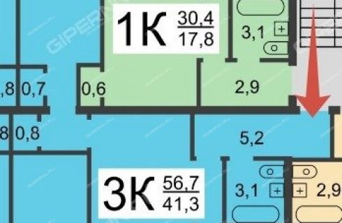 | Площадь | 57,4 / 41,7 / 5,7 |
