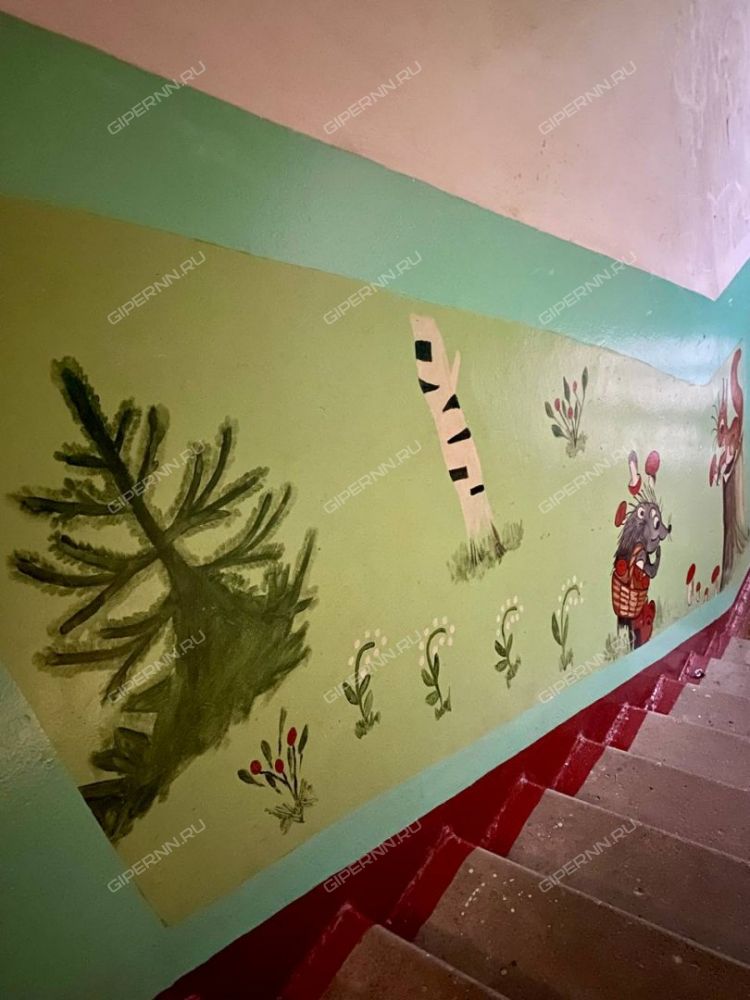 Чистый подъезд! На нашем этаже авторский рисунки, что придаёт еще большего уюта для проживания в этом доме!