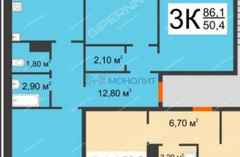 | Комнат | 3 комнаты |