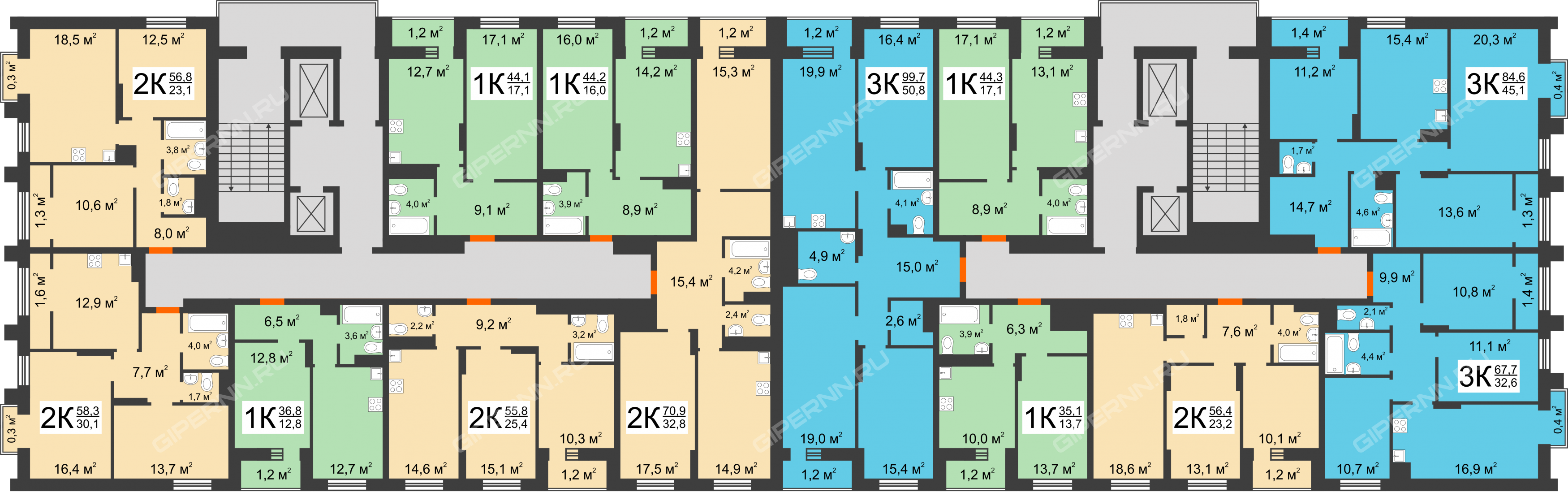 | Площадь | 65,8 / 32,5 / 16,9 |
