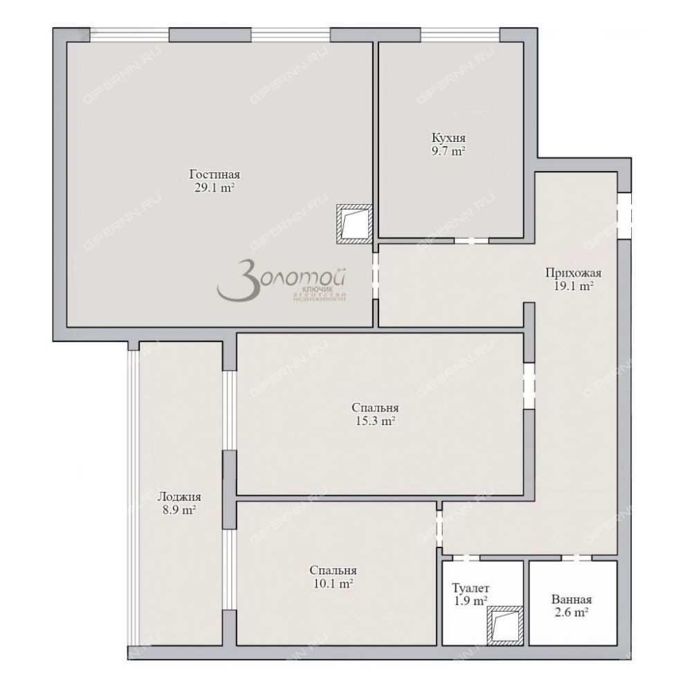 Общая площадь 92,1 кв.м. (с учетом лоджии)