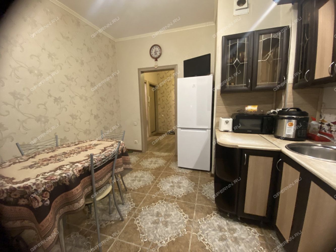 Кухня просторная — 11 квадратных метров, оснащена необходимой встроенной бытовой техникой,