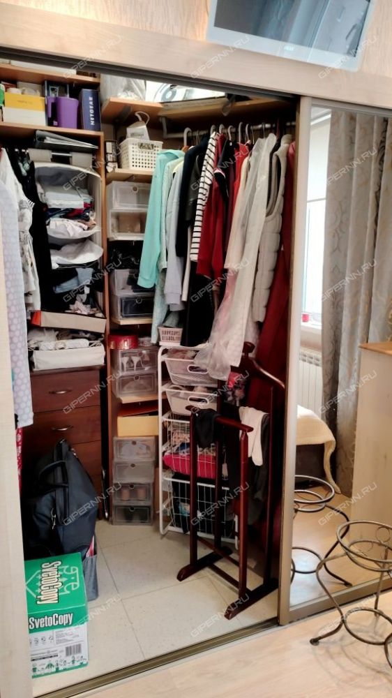 Вместительная гардеробная в спальне.