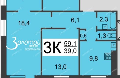 | Площадь | 59,1 / 39 / 9,8 |