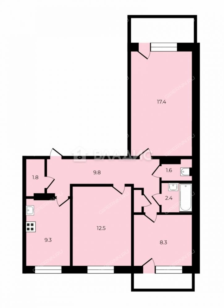 | Высота потолков | 2,55 м (средняя) |
