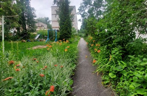 Во дворе прекрасный ухоженный двор с детской площадкой.
