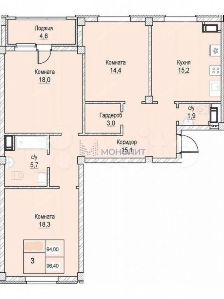 | Комнат | 3 комнаты |