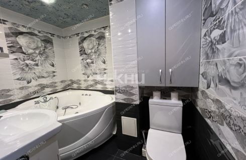 Санузел совмещенный, в кафеле, установлена джакузи. В квартире экологичное пробковое покрытие, в санузле и на лоджиях тёплый пол, натяжные потолки. Стены и полы выровнены, вся сантехника поменяна, установлены счетчики на воду и газ.