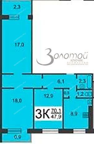 Три изолированные комнаты 18,1 (с выходом на балкон) + 17,0 (с выходом на лоджию) + 13,0 кв.м.